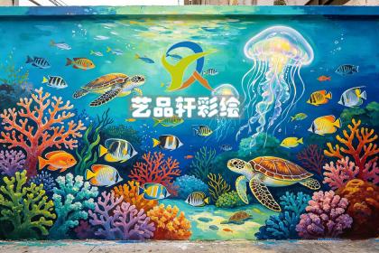 - 产品特点:墙体彩绘公司打造的海洋世界风,采用苏州彩绘技术,色彩鲜艳,图案精美,让墙面焕发生机,为空间增添独特魅力。
